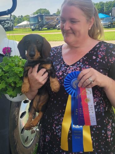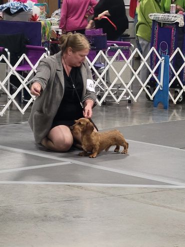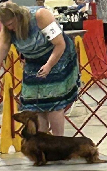 Debbie has been handling dogs for over 15 years. She began in Labradors and has shown many other sporting breeds as well. She has been showing Dachshunds for several years and has learned from and assisted Marietta Singleton. Debbie accepts Smooth and Longhair Dachshund client dogs and has shown other Hounds also.